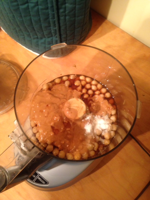 I processed the ingredients for about three minutes (how long you process will depend on your machine). I looked for the consistency of hummus as the recipe specified. The aroma was amazing and the chocolate had not been added yet – could not wait for clean-up.