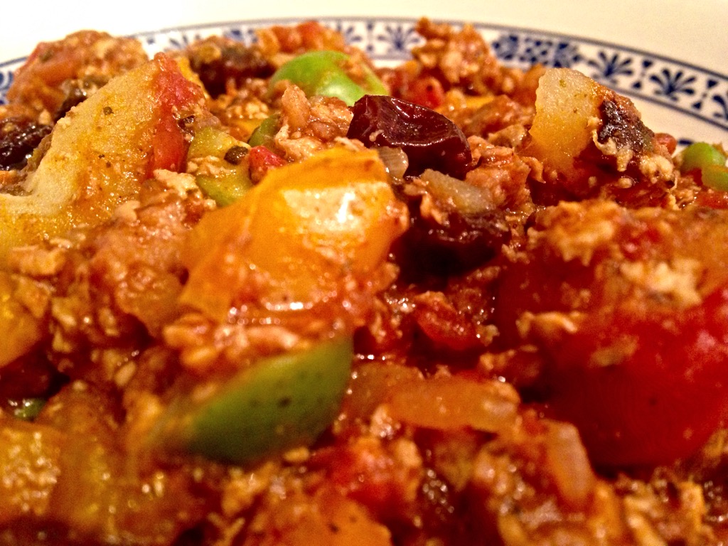 I wanted to make something different today. As I went though my recipes, I came across a recipe from a coworker, Sofia. I worked with Sofia many years ago. She used to make Picadillo when she was missing home. This is her recipe remade vegan. It was already gluten-free.